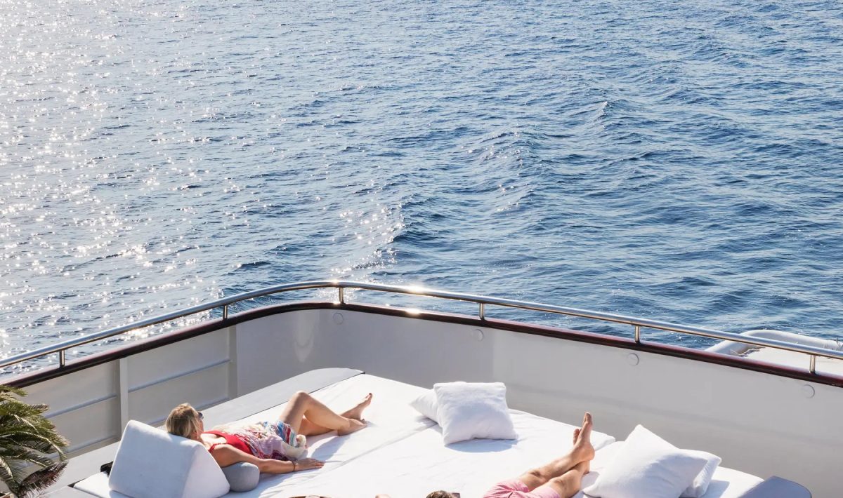 Primeiro superyacht a navegar nas Ilhas Galápagos, o Aqua Mare tem interiores assinados pelo estúdio de design Zuretti. A embarcação tem capacidade para apenas 16 hóspedes e conta com sete cabines projetadas individualmente, incluindo uma suíte de 80 m² – a maior do tipo em todo o arquipélago!