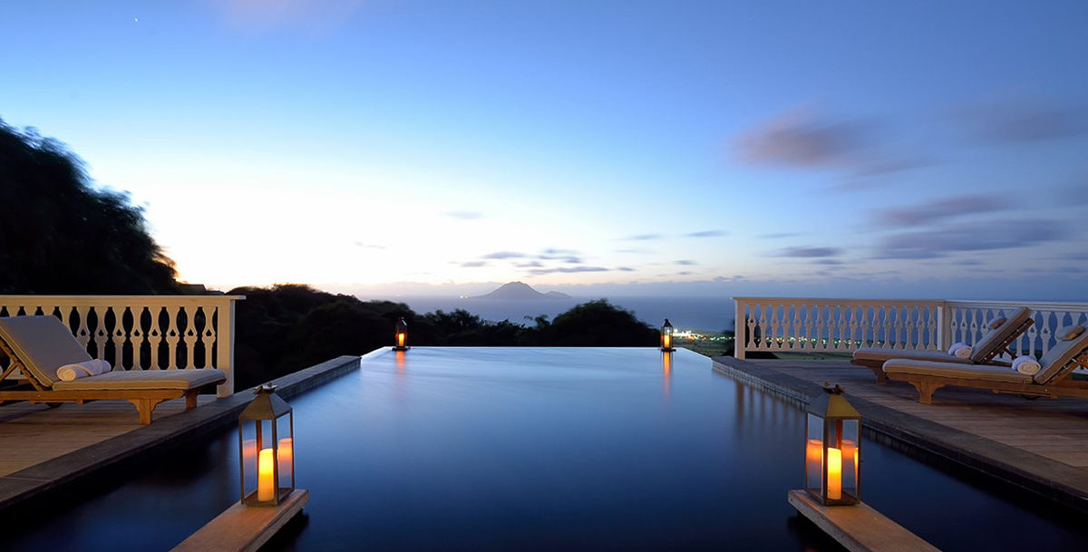 É um campo de golfe em uma fazenda orgânica de Saint Kitts. Não. É um resort caribenho com piscinas de borda infinita e um ar meio romântico, meio praiano, meio colonial e meio vintage.